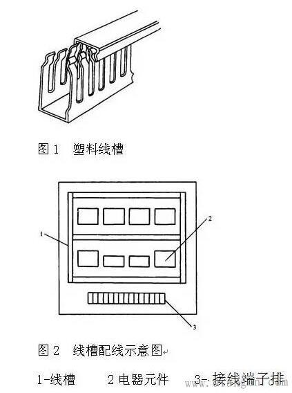 综合了明配线和暗配线的优点。适用于电气线路较复杂、电气元件较多的设备,不仅安装、检查维修方便且整个板面整齐美观,是目前使用较广的一种接线方式。线槽一般由槽底和盖板组成,其两侧留有导线的进出口,槽中容纳导线(多采用多股软导线作连接导线),视线槽的长短用螺钉固定在地板上,采用这种配线方式应注意以下几个方面。